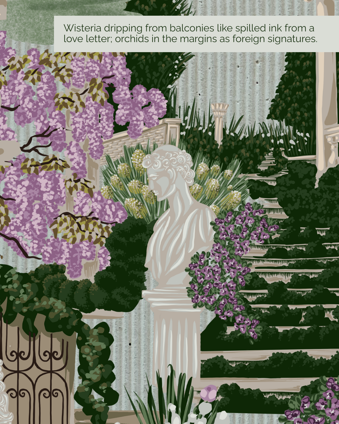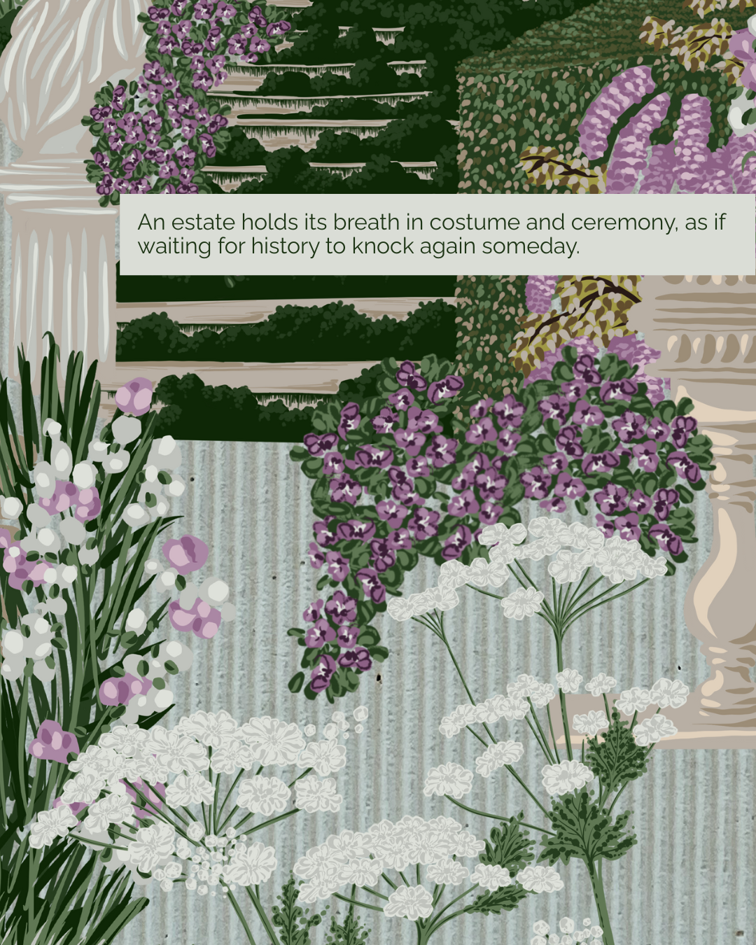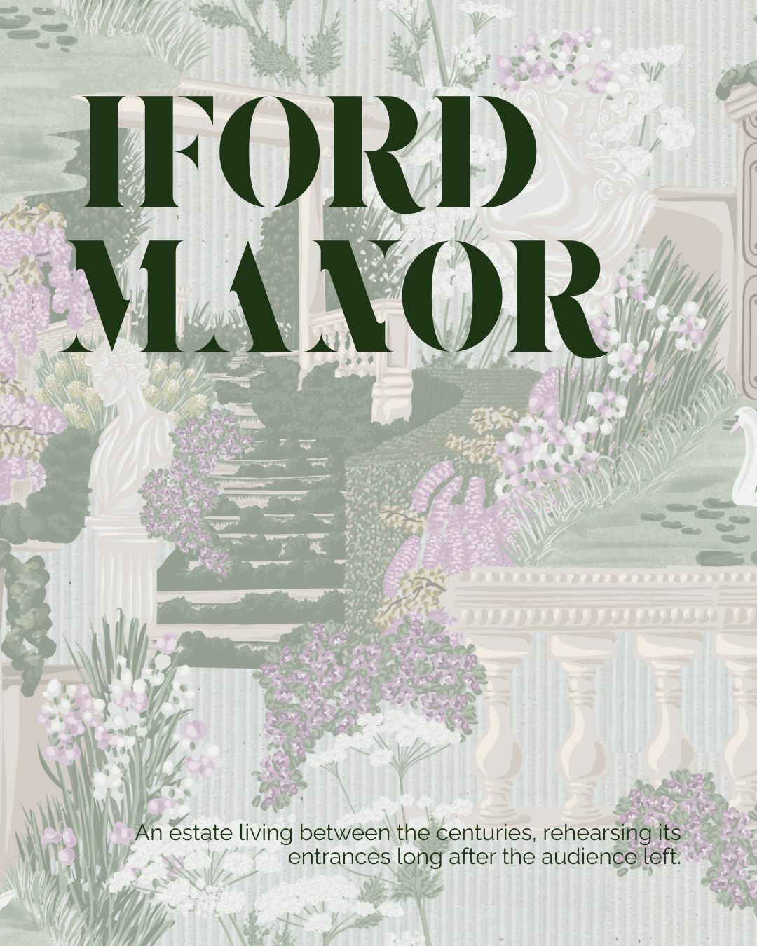 IFORD MANOR - An estate that stands in testimony to the legacy of its former inhabitants. Its lush flowering wisterias and flora that transform it into dreamscape. A surface pattern collection inspired from @ifordmanor, lush with overgrown foliage and flowering vines - for wallpaper and home textiles.